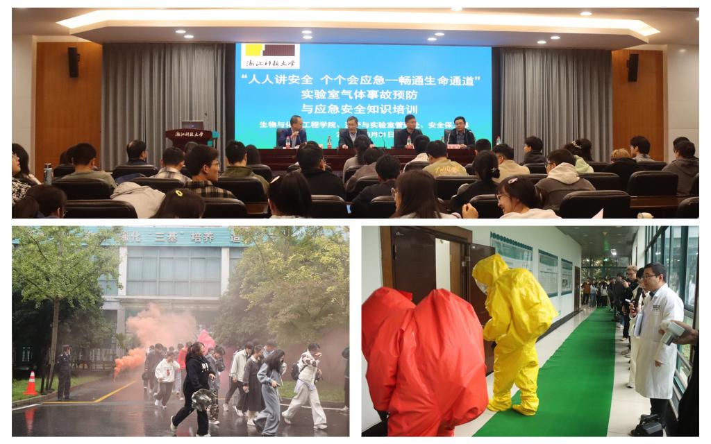 本次实验室安全应急演练,包括气体专项安全培训讲座、易燃气体爆燃现场模拟演示、气体泄漏应急安全处置实操演练和紧急疏散逃生演练等内容。